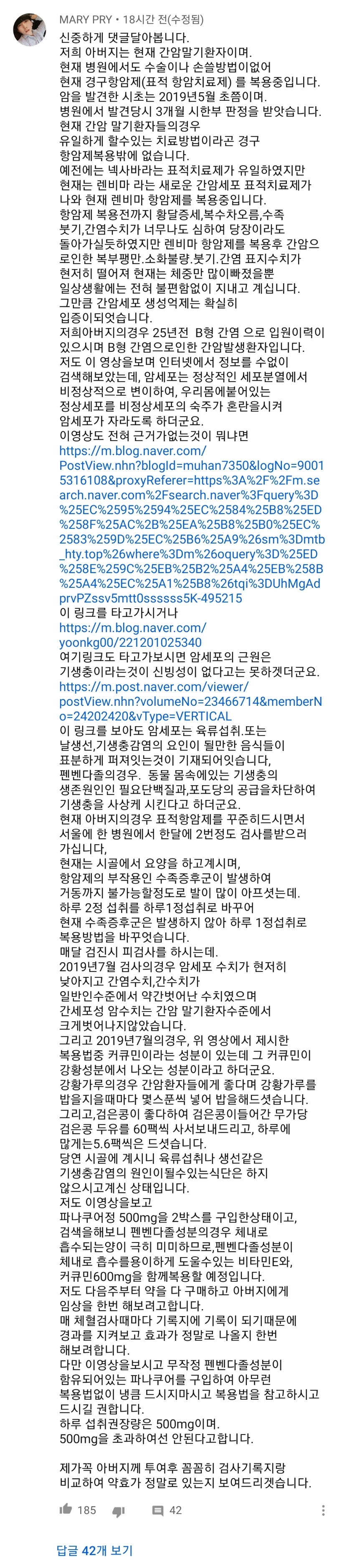 댓글보면 실제로 복용해보겠다는 암 환자들이 있네요.동영상이 사실 이면 좋겠습니다.