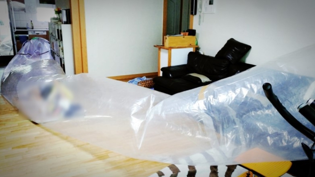 작년 어느 블로거가 35도를 넘는 날씨에 에어컨 설치가 어려워 김장비닐로 터널을 만들어 에어컨을 사용한다는 특별한 여름나기를 공유함